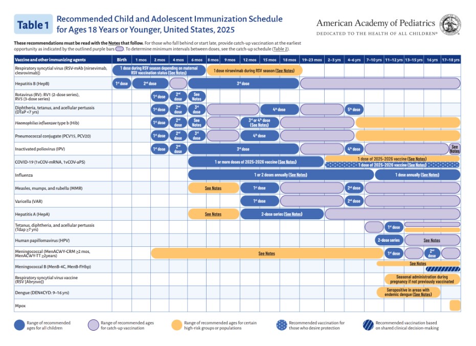 AAP Schedule (2025 CDC schedule). Our default schedule.